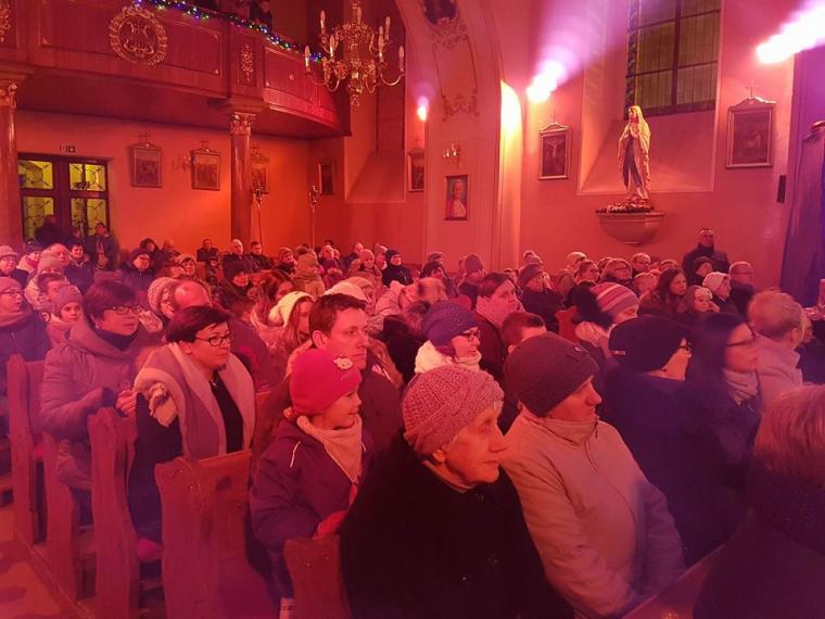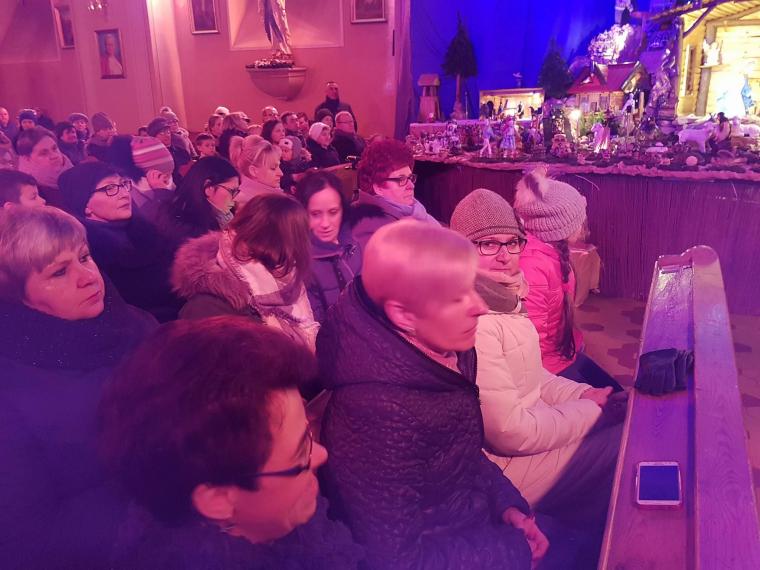 O godz. 17:30 lutogniewska świątynia wypełniła się wiernym i trudno się temu dziwić, gdyż trudno chyba znaleźć człowieka, który nie lubi  i którego nie wzruszają słowa i dźwięki kolęd. Tym bardziej, jeśli to kolędowanie  odbywa się wspólne z grupa młodych muzyków, którzy na chwałę Bogu wykorzystują otrzymane od Niego  zdolności. W Lutogniewskim Sanktuarium  wybrzmiały dźwięki i słowa popularnych kolęd i piosenek Bożonarodzeniowych, a wśród nich: „ Przybieżeli do Betlejem pasterze” . Pięknie korespondowały te słowa z budzącą zachwyt ruchomą szopką znajdująca się w światyni.  Ponadto uczestnicy wspólnego kolędowania usłyszeli kolędy: „Tryumfy Króla Niebieskiego”, „Mizerna cicha”, a także „W żłobie leży”, „ Wśród nocnej ciszy”, „Z narodzenia Pana”, a także piosenki „White Christmas”  i „ To już święta”. Chciałoby się dodać, niestety  już po świętach, ale przecież wciąż trwamy w radosnym czasie śpiewu kolęd, jeszcze w naszych kościołach cieszą nasze oczy szopki, jeszcze możemy zatrzymać się na chwilę  refleksji przy betlejemskim żłóbku. Wypełniło się wspólnym śpiewem kolęd Lutogniewskie Sanktuarium w mroźny styczniowy wieczór. Piękny był ten czas …piękne dane było przeżyć chwile tym, którzy zdecydowali się spędzić go przed tronem koronowanej Matki Bożej Pocieszenia.