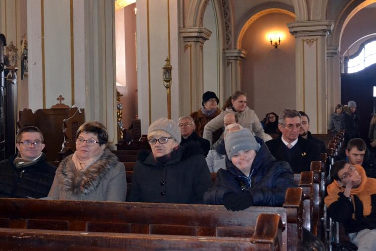 Rozpoczęło się o godz. 11:00 Eucharystią w Mikstacie (diecezja kaliska) w kościele parafialnym pw. Świętej Trójcy. W mikstackim wieczerniku spotkali się  na dziękczynieniu, bo każda Msza Święta jest dziękczynieniem osoby niepełnosprawne i wolontariusze tworzący Wspólnotę TACY SAMI. Na świąteczno - karnawałowe spotkanie zaproszone zostały także osoby niepełnosprawne z opiekunami z mikstackiej parafii. Eucharystię w intencji Wspólnoty i osób niepełnosprawnych  z mikstackiej parafii sprawował ks. wikariusz Krzysztof Lipiński, diecezjalny duszpasterz ludzi niepełnosprawnych. Podczas homilii zwrócił uwagę zebranych na najważniejsze gesty, takiej jak złożenie rąk do modlitwy, wykonywanie znaku krzyża, klękanie akcentując potrzebę starannego ich wykonywania. Podczas  Mszy Świętej grał i śpiewał zespół muzyczny.