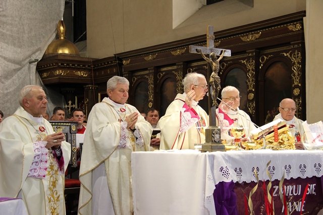 Przed zakończeniem Mszy św. biskupi, kapłani i wierni zebrani w kaliskiej bazylice zawierzyli św. Józefowi rodziny i dzieci nienarodzone. W swoim przemówieniu biskup kaliski wskazał, że 25 marca 2017 r. diecezja kaliska będzie obchodzić jubileusz 25-lecia powstania. Poinformował, że centralne uroczystości odbędą się 3 czerwca pod przewodnictwem kard. Stanisława Dziwisza z udziałem przewodniczącego Konferencji Episkopatu Polski abp. Stanisława Gądeckiego i nuncjusza apostolskiego w Polsce abp. Salvatore Pennacchio. Dziękował pierwszemu biskupowi kaliskiemu Stanisławowi Napierale, który przez 20 lat kierował diecezją, podejmował odpowiedzialne decyzje i tworzył struktury. O. Tadeusz Rydzyk przypomniał, że inicjatorem modlitwy za rodziny w pierwsze czwartki miesiąca był bp Stanisław Napierała. Podzielił się też refleksją na temat rodziny i ochrony poczętego życia. Zachęcał, aby katolicy bronili rodziny opartej na małżeństwie mężczyzny i kobiety. Spotkanie transmitowane było przez Telewizję Trwam, Radio Maryja i Diecezjalne Radio Rodzina.