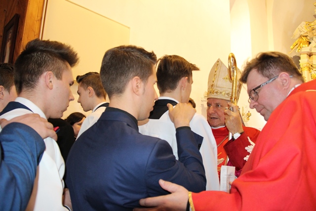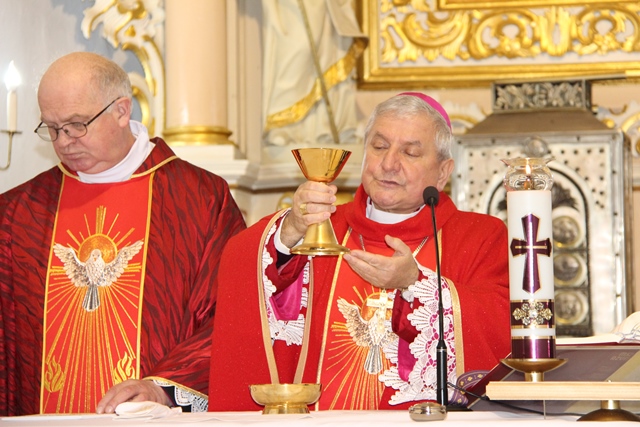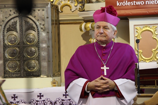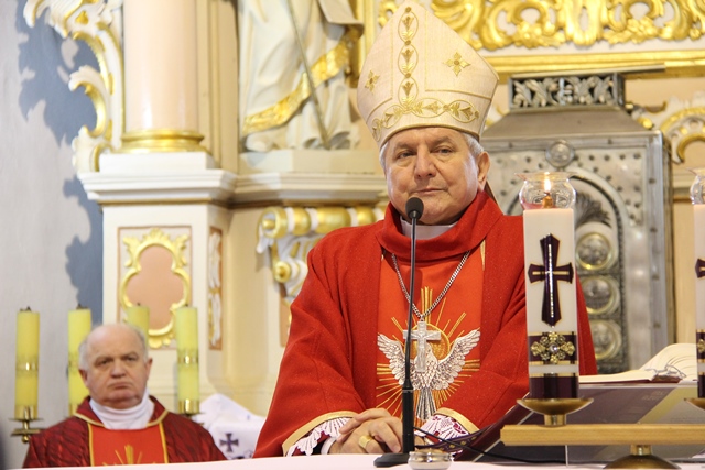 W homilii ordynariusz diecezji kaliskiej podziękował proboszczowi, wikariuszowi i parafianom za troskę o świątynię i kaplice filialne. - Ta troska duszpasterska jest najważniejsza, bo zobaczcie ile tu pokoleń ludzi przeszło. Te mury są przesiąknięte modlitwą, ale także łzami i radością. Mamy świadomość, że wszyscy zdążamy w jednym kierunku, czy to się komuś podoba, czy nie, ale będąc tutaj chcemy zapracować na wieczność – przekonywał bp Janiak. Zwracając się do młodzieży wskazywał, że sakrament bierzmowania zobowiązuje, aby mieć odwagę bronić wiary, gdy zajdzie taka potrzeba. - Wiara jest łaską. Papież Franciszek przed rozpoczęciem Wielkiego Postu w katechezie mówił, że wszystko jest łaską. My dzisiaj chcemy dziękować Panu Bogu za łaskę wiary, za to, że zostaliśmy włączeni do Kościoła. Chcemy modlić się, byście dochowali wierności Panu Bogu i byście wiarę otrzymaną przekazywali innym – mówił celebrans. Prosił o modlitwę w intencji prześladowanych za wiarę. - Chcemy pamiętać o tych, którzy oddają życie na misjach. Tyle ludzi ginie za wiarę, za przyznanie się do krzyża Chrystusowego, za posiadanie tekstów Pisma Świętego. My żyjemy w kraju wolnym, mamy przystęp do Kościoła, do sakramentów świętych, do Słowa Bożego, tylko potrzebna jest chęć i gorliwość człowieka – stwierdził biskup kaliski.