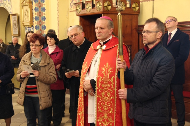 Na zakończenie drogi krzyżowej pasterskiego błogosławieństwa udzielił bp Łukasz Buzun. – Droga krzyżowa jest rekonstrukcją człowieka. To wszystko co przeżywamy w drodze krzyżowej, czego doświadczamy, co kontemplujemy jest nieodzowne, żeby człowiek z tych różnych doświadczeń, myśli i spraw, które niesie w swoim sercu i które wydarzyły się na drodze jego życia odnajdywał to co jest najważniejsze, czyli tą Bożą nić miłości i wtedy to wszystko co jest porozrywane, pełne niepokoju, co napełnia człowieka lękiem i bólem tworzy harmonijną mozaikę. Ta wędrówka drogą krzyżową niech owocuje odnalezieniem Bożej nici miłości, która tworzy wielką jedność chociaż w różnorodności – mówił diecezjalny duszpasterz środowisk twórczych.