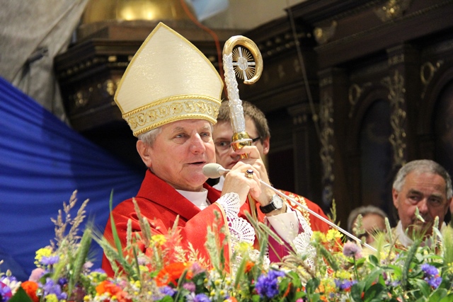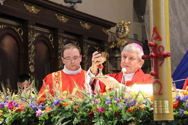W homilii biskup kaliski Edward Janiak wskazywał na tajemnicę Zesłania Ducha Świętego. – Apostołowie dopiero po zesłaniu Ducha Świętego poczuli siłę, moc, przekonanie, by głosić Ewangelię i poszli na cały świat. To był początek Kościoła. Dzisiaj w to święto pragniemy Panu Bogu dziękować za dar wiary, za Ducha Świętego w naszych osobistych sytuacjach życia, naszych decyzjach, chwilach zwątpienia, niepewności, niestałości, wewnętrznej ciemności – powiedział celebrans.