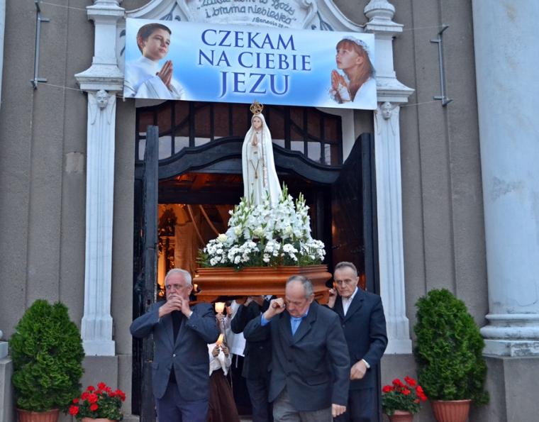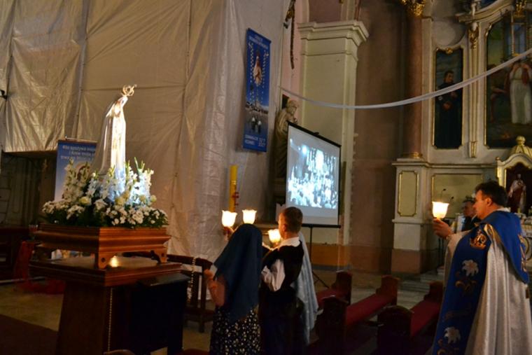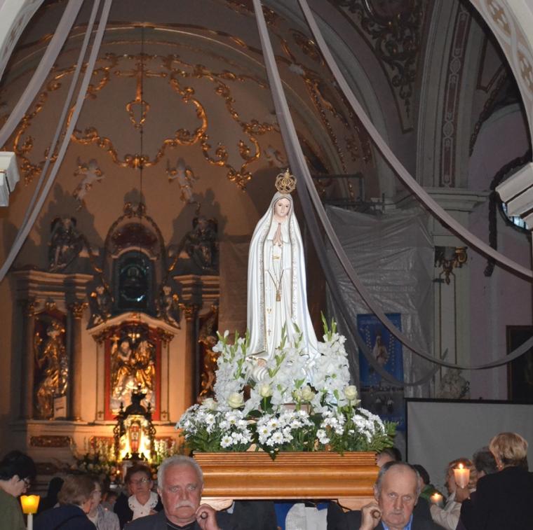 „ My zgromadzeni na nabożeństwie fatimskim odmawiamy różaniec, śpiewamy pieśni maryjne, prosimy Maryję o wstawiennictwo u Trójjedynego Boga we wszystkich naszych potrzebach. Tym samym jesteśmy wspólnotą, której celem jest sam Bóg”- powiedział do wiernych ks. kan. Krzysztof Ordzianiak