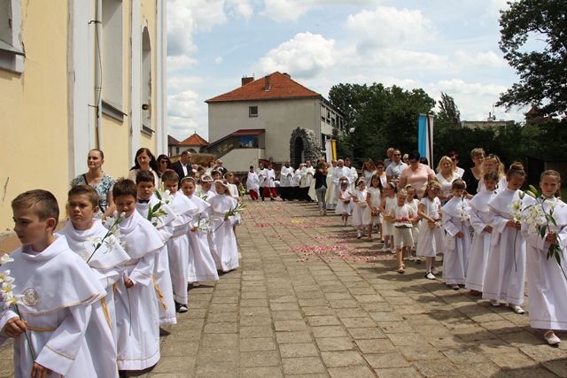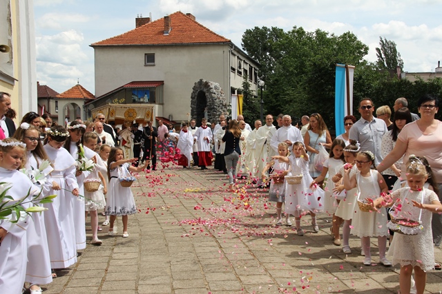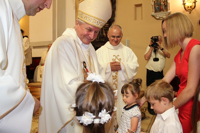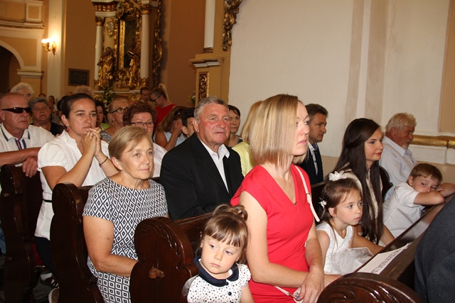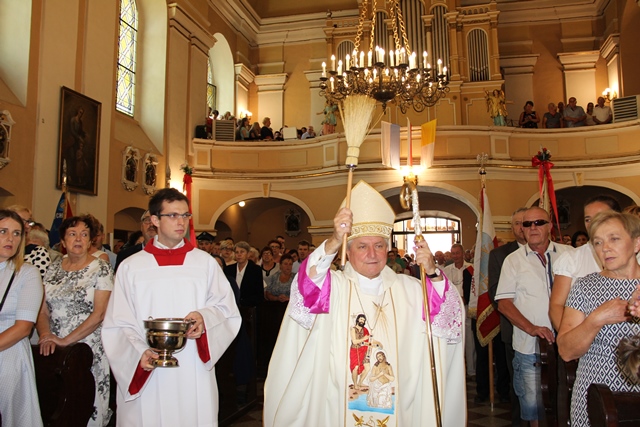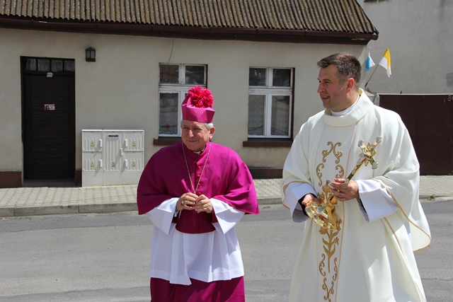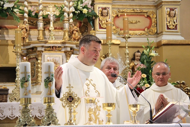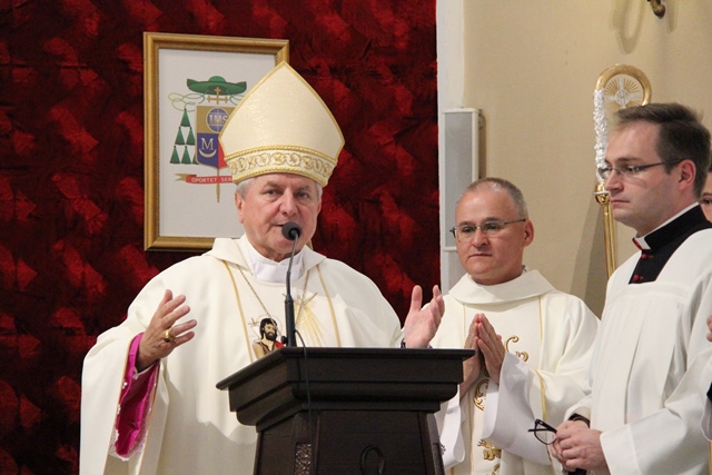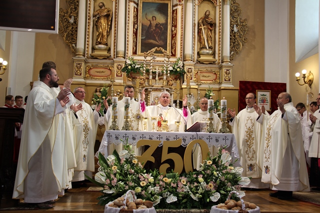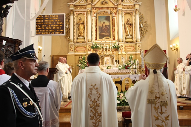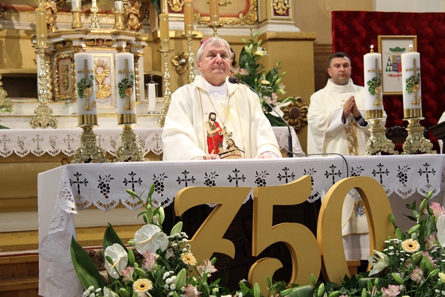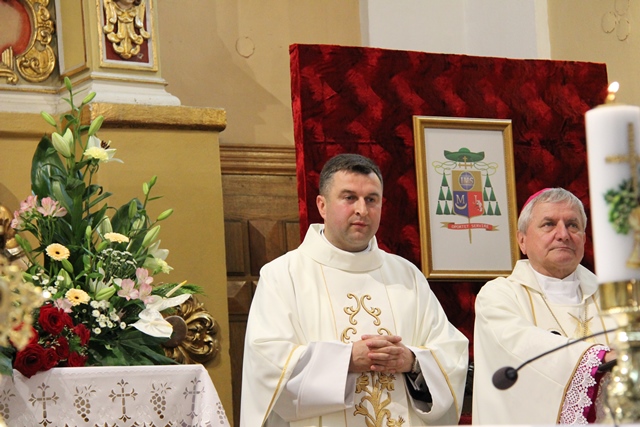 Witając biskupa, duchowieństwo i wiernych ks. Krzysztof Śliczny podkreślał, że parafianie przygotowywali się duchowo do tej uroczystości poprzez nowennę jubileuszową i modlitwę różańcową. Proboszcz dodał, że w parafii podjęto szereg prac inwestycyjnych z odnowieniem elewacji wieży i frontonu świątyni.