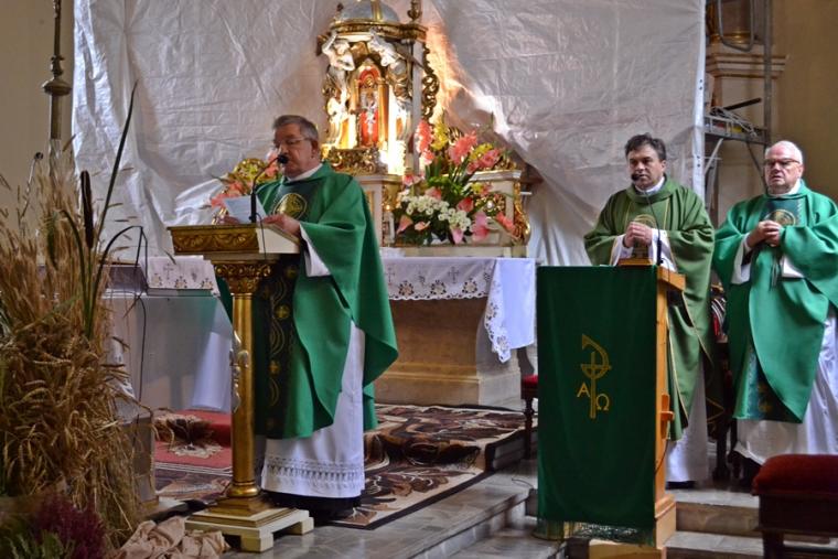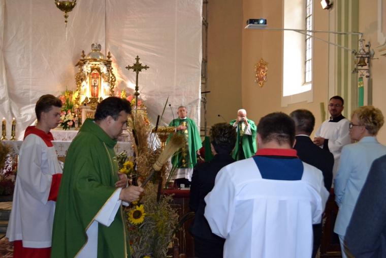 O godz. 10:30  w kościele farnym pw. Świętej Trójcy odprawiona została Msza Święta dziękczynna za tegoroczne zbiory oraz w intencji rolników, ogrodników, działkowiczów. Mszy Świętej koncelebrowanej przewodniczył ks. Proboszcz, Krzyzsztof Ordziniak, współcelebransami byli ks. kan. Grzegorz Klapa i ks. kan. Jerzy Rasiak.