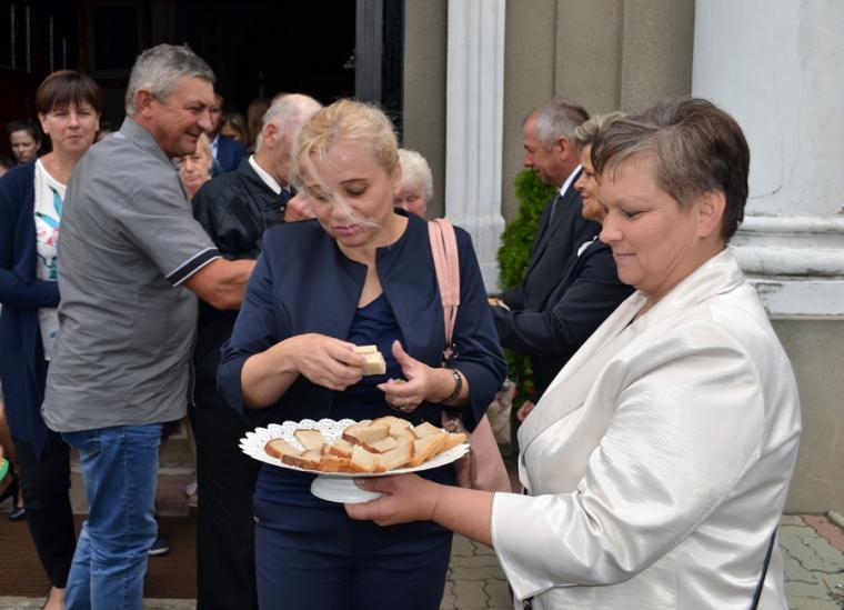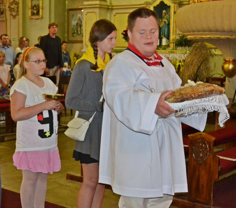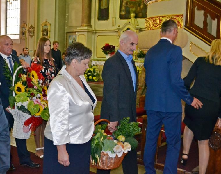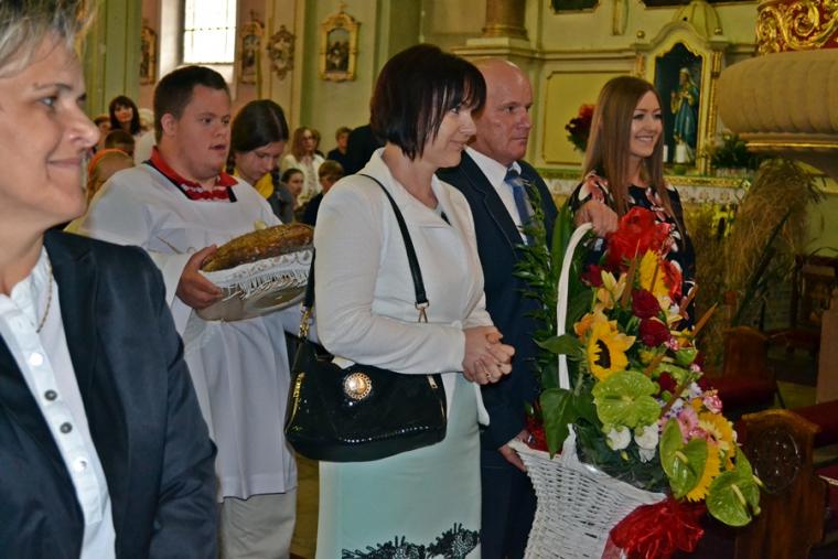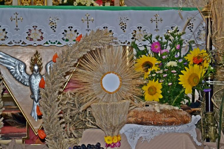 W procesji z darami przyniesiony wieńce żniwne, kosz z kwiatami, kosz z owocami i warzywami, hostie i wino. Został także przyniesiony  piękny bochen chleba, który jest symbolem pożywienia, dostatku, pomyślności. Uroczystość uświetniła orkiestra parafialna. Wychodzący z kościoła zostali poczęstowani chlebem oraz gronami winogron.