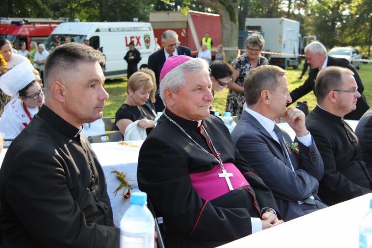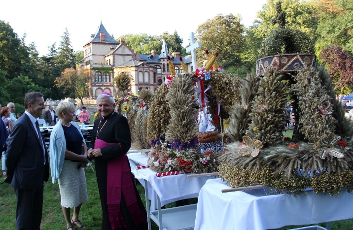 Święto plonów w Gołuchowie uświetnił koncert w wykonaniu Zespołu Pieśni i Tańca „Śląsk” im. Stanisława Hadyny. Wśród gości, którzy obejrzeli wspaniały ponadgodzinny występ wokalno-taneczny, był biskup kaliski Edward Janiak. Po koncercie ks. biskup Edward oglądał wieńce dożynkowe.