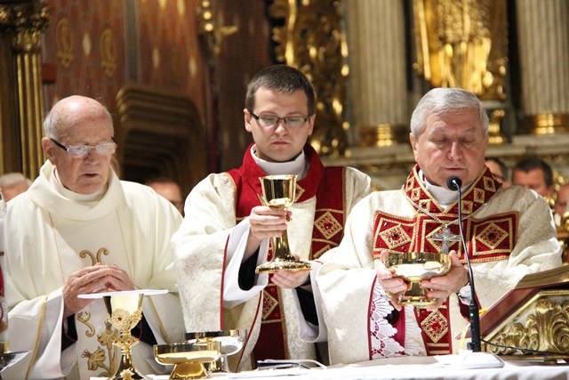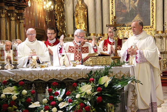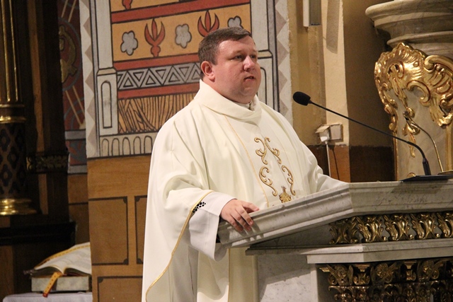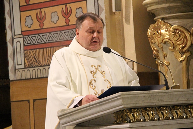 Prosił wiernych o modlitwę w intencji powołań kapłańskich. – Nie sposób, obchodząc 5. rocznicę ingresu biskupa tu, w tej katedrze, która jest nie tylko matką wszystkich kościołów w diecezji, ale także miejscem rodzenia się nowych kapłanów, nie wznieść do Pana pełnej błagania modlitwy o nowe powołania do kapłańskiej posługi. Myślę, że najpiękniejszym darem dla naszego biskupa, będzie podjęcie dziś przy wieczornym pacierzu dziesiątki różańca w intencji powołań w naszej diecezji – mówił kapłan.