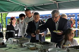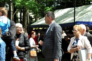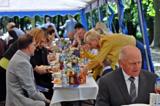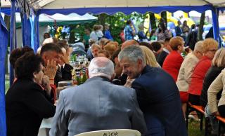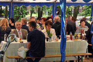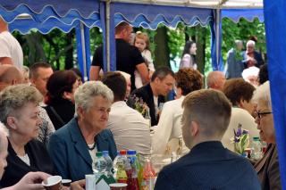 Po dziękczynieniu Panu Bogu nadszedł czas na radosne spotkanie w Parku Świętego Rocha. Dlaczego tam? Wielkim pragnieniem księdza Jubilata było spotkanie się przy stole ze wszystkimi uczestnikami dziękczynnej Eucharystii. Żadna sala nie byłaby w stanie pomieścić wszystkich tych, którzy w tym wyjątkowym dniu ofiarowali ks. Jubilatowi najcenniejszy dar – modlitwę.