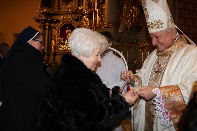 Po Mszy św. biskup i proboszcz przełamali się opłatkiem z wiernymi.
