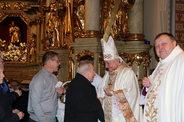 Wspólnie z biskupem kaliskim Edwardem Janiakiem modlili się ks. prał. Adam Modliński, proboszcz katedry, ks. kan. Marcin Papuziński, wicekanclerz Kurii Diecezjalnej, ks. Dominik Wieczorek, wikariusz katedry.