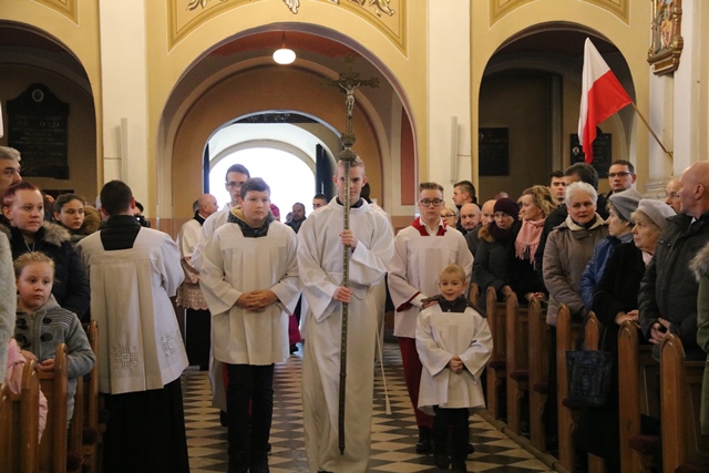Witając biskupa i licznie zgromadzonych wiernych ks. kan. Jerzy Mikołajewski dziękował parafianom za zaangażowanie w remont świątyni poprzez modlitwę i ofiarność.