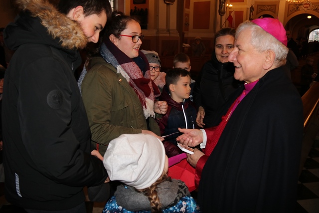 W homilii biskup kaliski zachęcał rodziców, aby starali się naśladować Świętą Rodzinę. – Ile jest małżeństw, które pięknie dają przykład i swoim życiem zachęcają innych małżonków. Rodzina jest podstawową komórką rozwoju duchowego człowieka. Dzisiaj dziecku nie wystarczy powiedzieć, żeby poszło do kościoła, rodzice muszą sami dawać przykład. Syn patrzy czy ojciec modli się, a córka obserwuje czy mama przystępuje do komunii św. To, co wpiszecie w serce waszego dziecka będzie procentować w przyszłości. Tak wychowany człowiek zawsze będzie pamiętał o tradycji wyniesionej z domu, modlitwie i szacunku do rodziców – akcentował hierarcha.