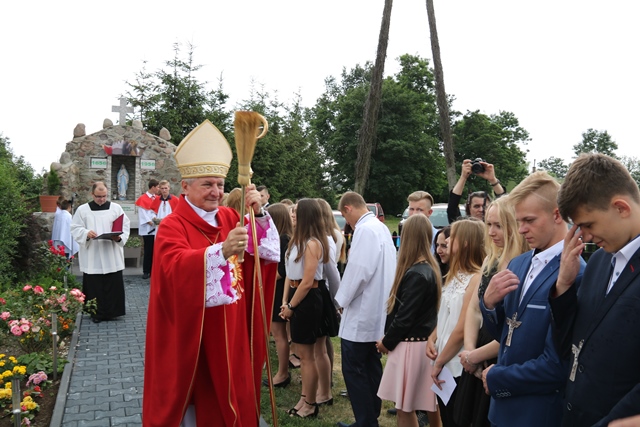 Biskup kaliski udzielił młodzieży sakramentu bierzmowania i poświęcił odnowioną grotę Matki Bożej zbudowaną jeszcze przed wojną przez Niemców.