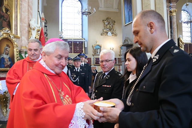 Biskup dziękował strażakom za służbę Bogu i ludziom. - Straż pożarna od niepamiętnych lat służy Bogu. Tam, gdzie jest straż, szkoła, Kościół tam jest życie i człowiek czuje się bezpiecznie – podkreślał bp Janiak.