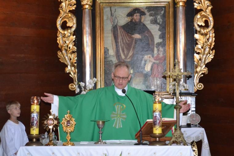 Podczas tej Eucharystii ks. kan. Arkadiusz modlił się w intencji osób chorych, starszych, niepełnosprawnych, którzy byli obecni w sanktuarium, ale także za przebywających w szpitalach, hospicjach, domach opieki. Przepełniona świadectwami z posługi w szpitalu była homilia wygłoszona przez celebransa. Rozpoczynając powiedział, że od roku pracuje jako kapelan. Podkreślił, że kapelan, to ten, który służy. Przyznał, że szpital kojarzy nam się z trudnym doświadczeniem, a „powinien stać się dla nas miejscem, gdzie Bóg jest najbliższy człowieka w tajemnicy ludzkiego cierpienia”. Następnie nawiązał do osoby błogosławionej, która obecna była wśród nas w relikwiach. Jak się okazało chociaż czasy w których żyli św. Roch i bł. Hanna dzieli siedem wieków, to w ich życiorysach znaleźć można wiele wspólnych elementów. Kaznodzieja podkreślił, że obydwoje od najmłodszych lat, byli uczeni wrażliwości na ludzką biedę i cierpienia. Zarówno św. Roch jak i bł. Hanna w młodym wieku tracą najbliższe osoby, oboje posługują chorym, cierpiącym. Kontynuując ks. kapelan przyznał, że bł. Hanna Chrzanowska jest jego szczególną patronką, która od młodzieńczych lat prowadziła go do kapłaństwa. Podkreślił, że poznał, kim ona tak naprawdę była dopiero podczas jej beatyfikacji. Zaakcentował, że ona podobnie jak święty Roch nie miłowała słowem, ale czynem. W dalszej części homilii ks. Arkadiusz przywołał przykład jej heroicznej posługi najbiedniejszym, najbardziej potrzebującym. Zwrócił uwagę, że była ona ta, która wiedziała, że jeśli będzie się z szacunkiem, miłością i delikatnością pielęgnowało ciało człowieka, to z czasem dusza otworzy się na Boga. Dodał, że to ona była tą, która zaprowadziła Jana Pawła II i wielu kapłanów do chorych. Jan Paweł II był dla niej zawsze wsparciem, zawsze mogła na niego liczyć. Ich wspólnym dziełem były pierwsze rekolekcje dla chorych, niepełnosprawnych. Z kolei to chorzy zaprowadzili przyszłą błogosławioną do Chrystusa.
