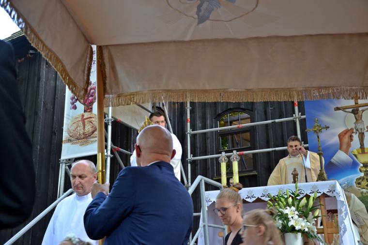Msza Święta koncelebrowana rozpoczęła się przy ołtarzu polowym przy sanktuarium o godz. 18:30. Przewodniczył jej ks. proboszcz Krzysztof Ordziniak. Wraz z nim przy ołtarzu stanęli ks. kan. Andrzej Grabański, ks. kan. Grzegorz Ignor i ks. wikariusz Marcin Walczak. Rozpoczynając Eucharystię ks. kan. Krzysztof zaznaczył, że w Najświętszej Eucharystii zawiera się całe dobro duchowe Kościoła. Sprawia to, że człowiek wierzący pragnie spotykać się ze swoim Panem. Zaakcentował, że dobrze, że tradycją jest, że zakończenie oktawy Bożego Ciała odbywa się przy sanktuarium św. Rocha, wśród grobów naszych bliskich. Mamy okazję wyrazić im wdzięczność modlitewną za przekazany dar wiary. Jednocześnie zachęcał zebranych na Mikstackim Wzgórzu, by postawili sobie pytanie: Co ja przekazuję następnemu pokoleniu?