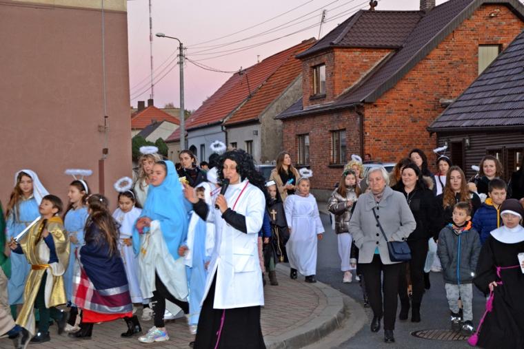 Przez cały październik od poniedziałku do piątku dzieci z mikstackiej parafii spotykały się na modlitwie różańcowej. Przyszły na nią także 29 października, ale przebrane za różnych świętych, bo po zakończonej modlitwie różańcowej odbył się ulicami Mikstatu Marsz Świętych. Jego trasa wiodła od kościoła farnego do Diecezjalnego Sanktuarium Świętego Rocha.