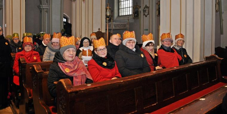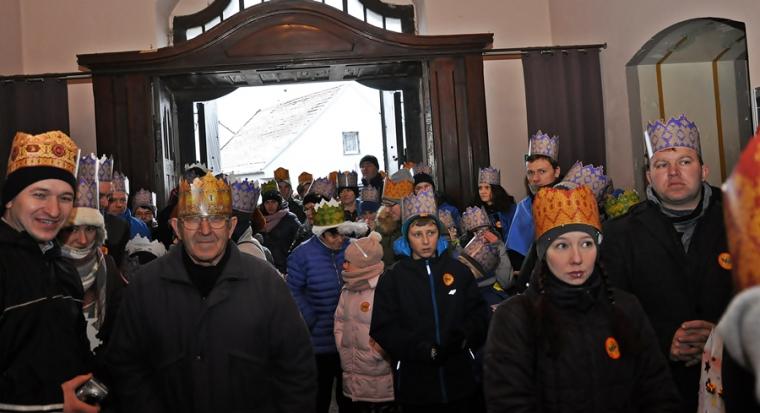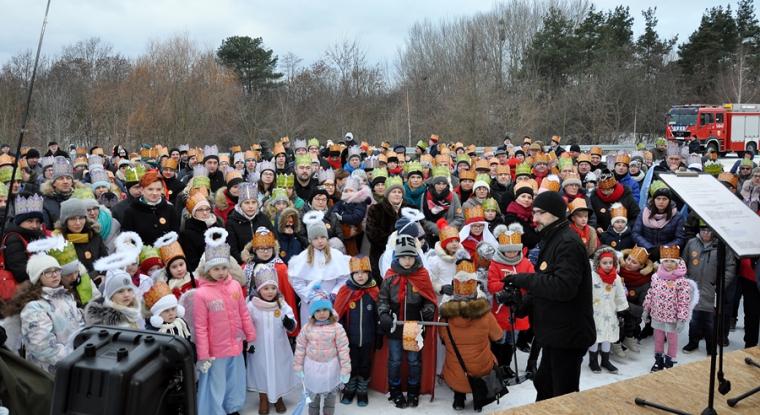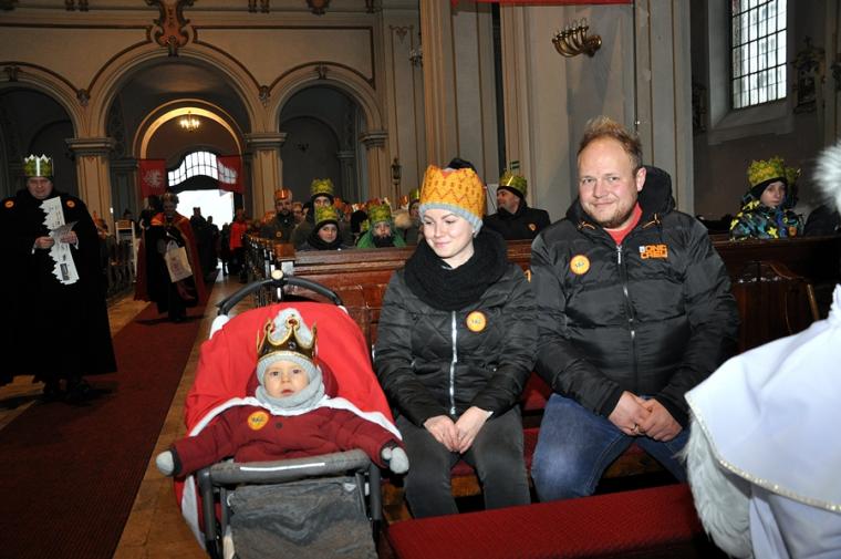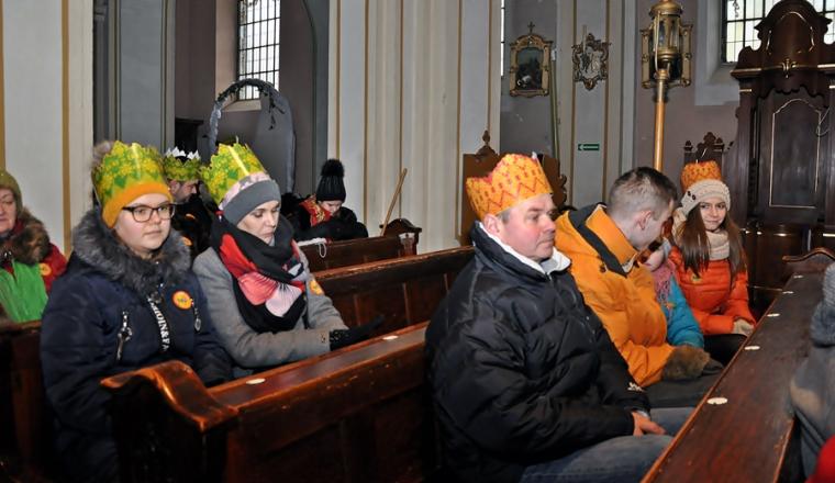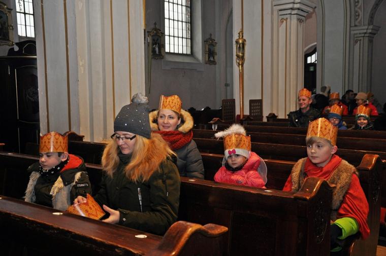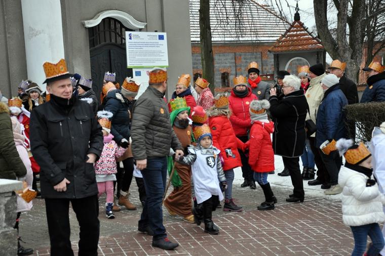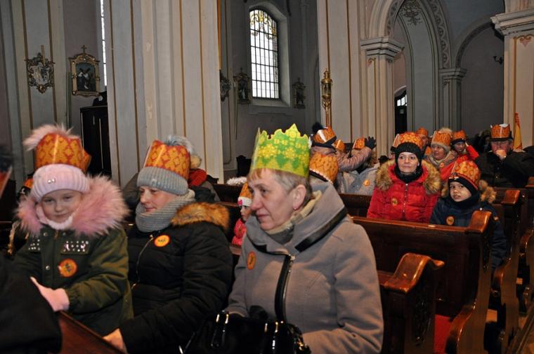 Około godz. 14:00 w kościele pw. Świętej Trójcy zaczęli zbierać się uczestnicy Królewskiego Orszaku. Tu odbyła się jego pierwsza część, którą poprowadził ks. Szymon Grzeszkiewicz, proboszcz parafii pw. Zwiastowania Pańskiego. Rozpoczynając ks. Szymon podkreślił, że spotykamy się po raz pierwszy, wspólnie, dekanalnie, by obchodzić obchodach Święta Objawienia Pańskiego, by wziąć udział w Orszaku Królewskim. Zaakcentował, że uczestnicy  Orszaku podobnie jak Mędrcy ze Wschodu udają się, by oddać pokłon Jezusowi, ale także dać świadectwo swojej wiary. Następnie ks. Szymon skierował słowa powitania do wszystkich tych, którzy przybyli wraz ze swoimi parafiami. W postacie królów wcielili się księża proboszczowie. Kapłan podkreślił, że Orszak Trzech Króli, nie ma długiej tradycji, ale coraz więcej miejscowości włącza się w tę radosną formę świętowania i wspólnego kolędowania.