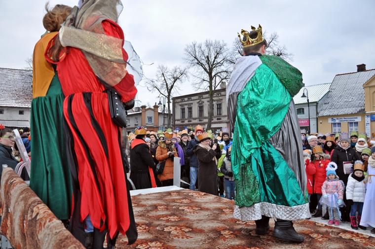 Po prezentacji Trzech Królów zebrani w mikstackim kościele obejrzeli scenę wyjścia brzemiennej Maryi  Józefa, odmówiona została  modlitwa Anioł Pański, a następnie Orszak wyruszył na ulice miasta. Na przedzie szli harcerze z orszakowym sztandarem i chorągwiami poszczególnych królestw, następnie anioły, Trzej Królowie, brzemienna Maryja z Józefem i pozostali uczestnicy Orszaku. Śpiewając kolędy, w atmosferze radości, wszyscy przeszli na mikstacki Rynek pod figurę Najświętszego Serca Jezusowego. Tu mieli okazję zobaczyć dwie scenki przygotowane przez uczniów szkoły podstawowej w Mikstacie. Pierwsza ukazywała dwór Heroda, w którym panuje przepych, pycha, zazdrość, w którym odmiana  oblicza utożsamiana jest ze zmianami wyłącznie zewnętrznymi. Zmiany, na których koncentrują się mieszkańcy dworu Heroda nie dotyczą odmiany wewnętrznej, nie odnoszą się do przemiany serca człowieka. W drugiej scence uczestnicy  orszaku mogli zobaczyć gospodę, której drzwi były zamknięte dla Chrystusa, ale która proponowała człowiekowi wiele pokus, sprawiających, że żyje on w nieładzie moralnym.
