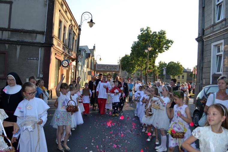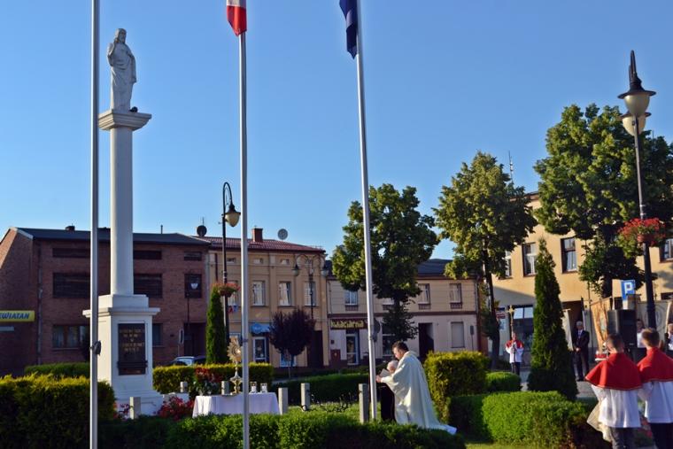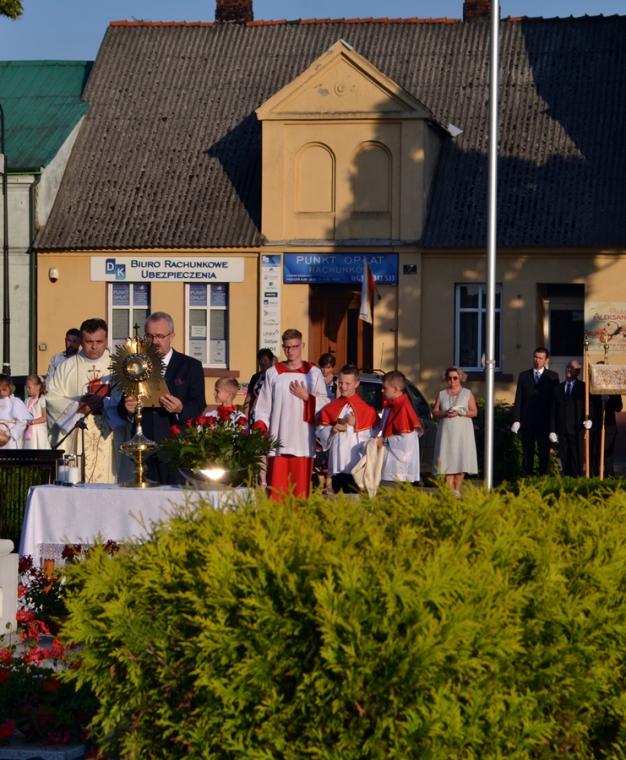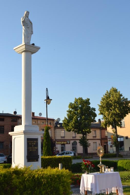 Po Mszy Świętej procesja z Najświętszym Sakramentem wyruszyła na rynek. Znajduje się tam figura Najświętszego Serca Pana Jezusa ufundowana przez mieszkańców. Została poświęcona 12. lipca 1936 roku Ks. Bpa Dymka. W czasie uroczystości poświęcenia ówczesny Burmistrz miasta Pan Franciszek Toboła odczytał akt poświęcenia się miasta Najświętszemu Sercu Pana Jezusa. 8. czerwca A.D. 2018 roku słowa aktu wybrzmiały ponownie. Odczytał je tym razem pełniący obecnie obowiązki Burmistrza Miasta i Gminy Mikstat pan Henryk Zieliński. Obecni na mikstackim rynku usłyszeli m.in. takie słowa: „Przychodzimy więc dzisiaj, by uznać całkowite panowanie Twoje nad miastem naszem. Chcemy odtąd Twojem życiem żyć, chcemy w sobie te cnoty pielęgnować, za które już tu na ziemi pokój obiecałeś(...). Panuj więc nad naszym rozumem przez prostotę wiary, panuj też przez swą miłość nad sercami naszemi, które niech całkowicie nią zapłoną. Chcemy je w Twej żarliwej miłości utrzymać przez częste przyjmowanie Komunii św. Racz, Boskie Serce, przewodzić naszym zebraniom, błogosław nasze duchowne i doczesne przedsięwzięcia, rozpraszaj nasze troski, uświęcaj nasze pociechy i łagódź nasze cierpienia". Jak aktualne pozostają nadal słowa wypowiedziane przed ponad osiemdziesięciu laty. Po odczytaniu aktu poświęcenia się miasta Najświętszemu Sercu Pana Jezusa wybrzmiały słowa pieśni: „Najświętsze Serce Boże, poświęcamy Ci Naszą Ojczyznę i nasze miasto, Nasze rodziny i nas samych; Serce Boże, przyjdź Królestwo Twoje”. W kontekście odnowionego aktu nabrały one wyjątkowego znaczenia. Następnie przy ustawionym nieopodal figury Najświętszym Sakramencie została odmówiona Litania do Najświętszego Serca Jezusowego. Następnie Ks. Kan. Krzysztof udzielił błogosławieństwa Najświętszym Sakramentem na cztery strony świata. Potem procesja powróciła do kościoła. Udział w uroczystościach ku czci Najświętszego Serca Pana Jezusa był publicznym wyznaniem wiary, świadectwem, dla tych, którzy nie dostrzegają jeszcze być może, bądź nie odkryli bogactwa miłości i wielości łask spływających na ludzkość z przebitego Serca Pana Jezusa.