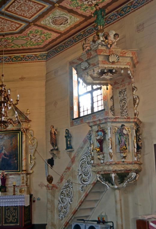 Pierwszym miejscem, które nawiedziliśmy w upalny sobotni dzień był położony na wzgórzu kościół pw. Świętego Rocha w Dobrzeniu Wielkim. To miejsce dla nas szczególne. Podobnie jak w Mikstacie znajduje się tu zabytkowy drewniany kościół pw. Świętego Rocha. W Dobrzeniu, podobnie jak w naszej parafii wierni czczą św. Rocha.  Przy kościele oczekiwał na nas ks. proboszcz Jan Polok. Ks. Jan jest także wielkim czcicielem św. Rocha i autorem książki dla dzieci pt. Święty Roch pielgrzym miłości. W kościele był czas na chwilę modlitwy, a następnie ks. Jan przekazał nam kilka ciekawostek związanych z budową tej pięknej świątyni. Opowiedział nam o wystroju kościoła zwracając szczególną uwagę na obraz w ołtarzu głównym przedstawiający św. Rocha orędującego u Boga za chorymi. Z zainteresowaniem wysłuchaliśmy informacji o przebiegu uroczystości odpustowych w Dobrzeniu. Zachwycił wielu ten niewielki, ale niezwykle urokliwy kościół. Po wysłuchaniu informacji ks. Jana odmówiliśmy Litanie do Świętego Rocha. Przed świątynią znajduje się figura św. Rocha w stroju pielgrzyma. Pielgrzym to ktoś znajdujący się w drodze. My także pielgrzymowaliśmy. Było nam dobrze u św. Rocha w  Dobrzeniu. Niestety, trzeba było wyruszać  dalszą drogę.