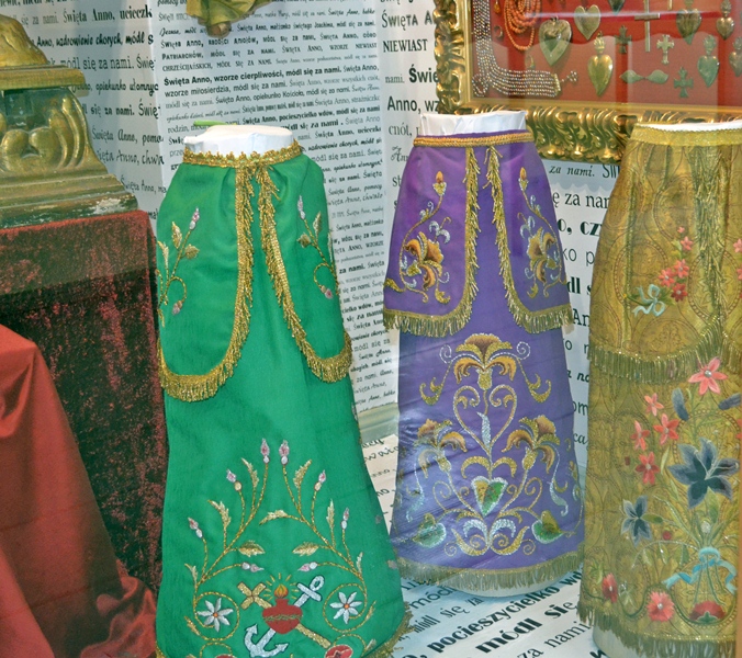 Po mszy Świętej ojciec franciszkanin przedstawił nam historię bazyliki i kultu św. Anny Samotrzeciej. Zwrócił naszą uwagę na malowidła na suficie przedstawiające sceny z życia św. Anny. Zwiedziliśmy także muzeum klasztorne gdzie zobaczyliśmy m.in. sukienki, które nakładane są na figurę św. Anny Samotrzeciej. Ich kolor, jak wyjaśnił nam ojciec uzależniony jest od okresu roku liturgicznego. Obejrzeliśmy makietę przedstawiającą sanktuarium św. Anny i dróżki kalwaryjskie. Wracając z muzeum zatrzymaliśmy się jeszcze na chwilę modlitwy w bazylice, gdzie odmówiliśmy Litanię do Świętej Anny. Czas szybko płynie o trzeba było wracać do domu. Powrót nie kończy jednak czasu pielgrzymowanie, ale jeden z jego etapów. Pielgrzymką jest całe nasze życie. Jej celem - domu Ojca. Mamy nadzieję, że gdy nadejdzie jej kres spotkamy się z Jezusem, Maryją, świętymi Joachimem i Anną, św. Jackiem, św. Rochem…