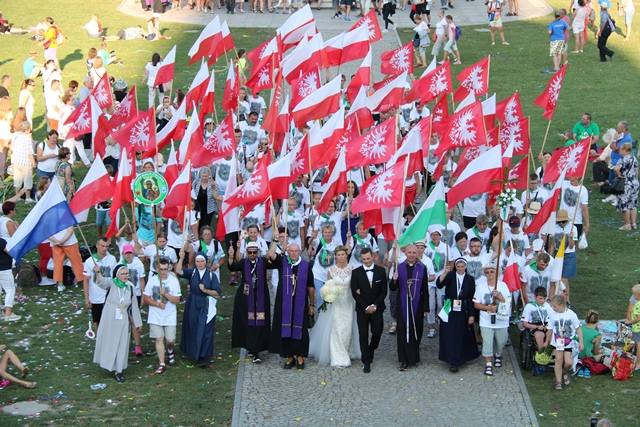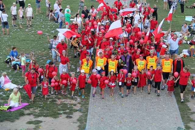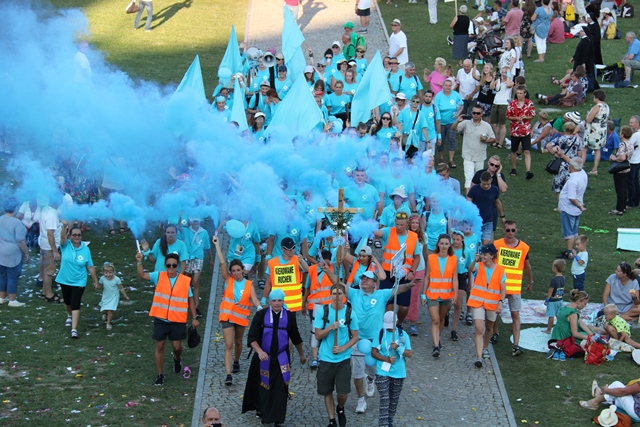 Jako pierwsza na Jasną Górę weszła grupa różowo-niebieska z Narodowego Sanktuarium św. Józefa w Kaliszu, której przedstawiciele nieśli obraz św. Józefa Kaliskiego. Na czele szli: bp Łukasz Buzun i ks. prał. Jacek Plota, kustosz kaliskiej bazyliki. – Aspekt Nadzwyczajnego Roku Świętego Józefa Kaliskiego podkreśliło wejście na Jasną Górę z obrazem św. Józefa, który na początku istnienia diecezji kaliskiej peregrynował po wszystkich parafiach i teraz umieszczony jest w kaplicy seminaryjnej. Było to symboliczne przejście św. Józefa do Maryi, czyli z Narodowego Sanktuarium św. Józefa do Narodowego Sanktuarium Matki Bożej – zaznacza ks. Rafał Grzęda.