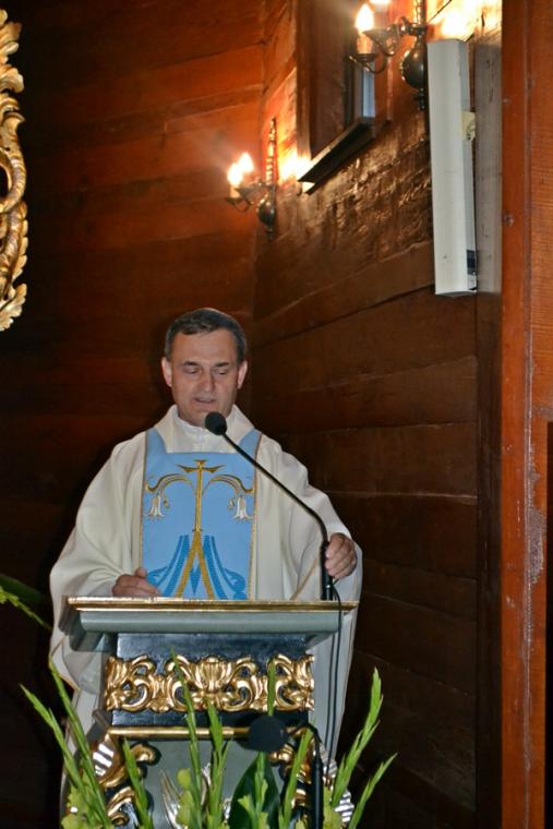 O godz. 18:30 sprawowana była w sanktuarium Eucharystia, której przewodniczył ks. kan. Adam Kosmała, proboszcz parafii rzymskokatolickiej pw. Narodzenia Najświętszej Maryi Panny w Kotłowie. Współcelebransem był ks. kan. Krzysztof Ordziniak. Mszę św. tradycyjnie już w tym przedodpustowym czasie poprzedził śpiew Godzinek o św. Rochu Wyznawcy. Ksiądz kan. Adam wygłosił do zebranych homilię. Przedmiotem rozważania było błogosławieństwo zawarte w słowach „ Błogosławieni, którzy się smucą, albowiem oni będą pocieszeni…”