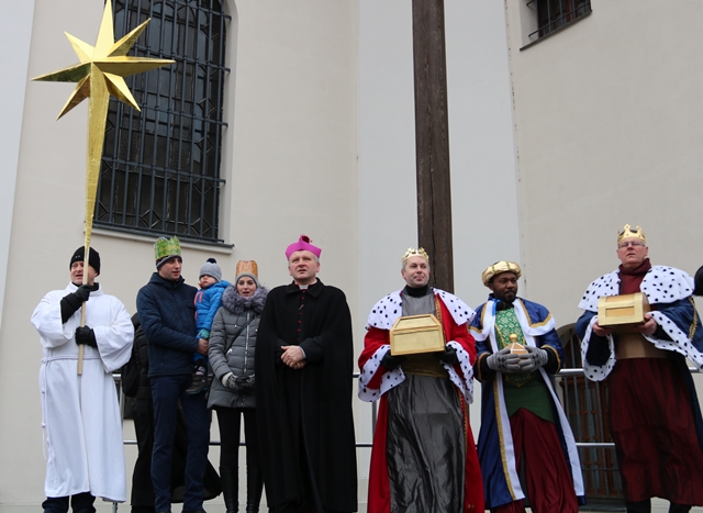 Przed kaliską bazyliką organizatorom i uczestnikom orszaku podziękował bp Łukasz Buzun. – Przez to, że idziemy w tym orszaku wyrażamy naszą wiarę – stwierdził duchowny.