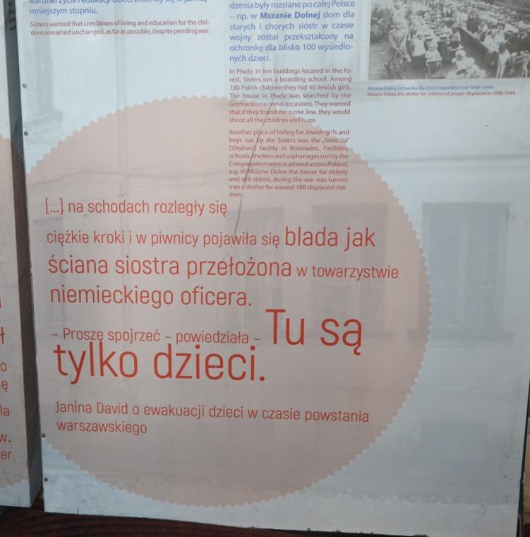 Wyjaśnijmy może jeszcze skąd tytuł tej wystawy: „ Do sierocińca (…) przybiegła dziewczynka (…)  i powiedziała do przełożone Siostro, bądź moją matką, ja nie mam już rodziców”.  Czy można było odmówić takiej prośbie? Nie odmówiła przełożona prośbie tej małej dziewczynki, nie odmówiły siostry i setkom innych dzieci. Ta  wystawa  jest hołdem dla Sióstr Franciszkanek Rodziny Maryi , które narażając własne życie były dla nich  właśnie matkami…