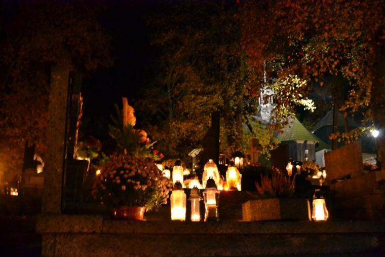 Tak jak podczas każdej Eucharystii Pan zastawił dla nas stół, wielu skorzystało z zaproszenia i przyjęło Komunię Świętą zapewne ofiarując ją za swoich bliskich zmarłych. Po końcowym błogosławieństwie odbyła się procesja z modlitwami za zmarłych. Modlitwie przewodniczył ks. kan. Krzysztof Ordziniak. Przy pierwszej stacji modliliśmy się za zmarłych biskupów, kapłanów, diakonów, braci i siostry zakonne. W sposób szczególny polecaliśmy kapłanów, którzy posługiwali w naszej wspólnocie parafialnej. Druga stacja była miejscem modlitwy za zmarłych rodziców i przodków. Ważna jest pamięć o tych, którzy przekazali nam życie, wiarę, troszczyli się o przekaz tradycji. Przy trzeciej stacji polecaliśmy miłosierdziu Bożemu braci, siostry, dzieci, współmałżonków, krewnych, rodziców chrzestnych, wychowawców, dobrodziejów. To ważne w naszym życiu osoby, które zostały nam postawione na naszej drodze do nieba, ci od których doświadczyliśmy wiele dobra. Kolejna stacja stała się okazją do modlitwy za wszystkich zmarłych spoczywających na naszym cmentarzu, za poległych i ofiary wojen. Przy ostatniej stacji modlitwą objęliśmy wszystkich zmarłych, których wiarę znał jedynie Bóg i o których Kościół zawsze pamięta.