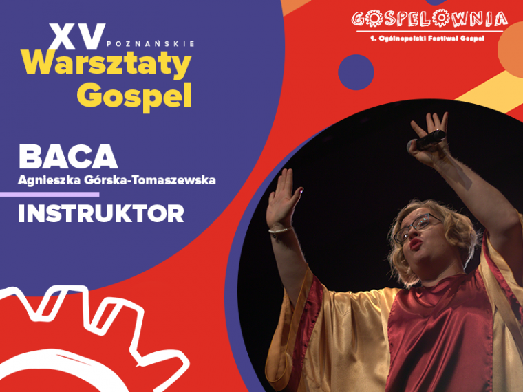 Instruktorką będzie Agnieszka Górska-Tomaszewska, znana wszystkim jako „Baca”. Od 20 lat jest dyrygentką chóru Gospel Joy z Poznania, który jako jedyny chór gospel z Polski był dwukrotnie w USA i tam „u źródła”, chórzyści uczyli się, jak śpiewać gospel. Gospel to wielka pasja Bacy i styl jej życia. Agnieszka znana jest jako wulkan energii, ciepła i uśmiechu, z niegasnącym entuzjazmem. Bez trudu porywa do śpiewu i tańca, w jej towarzystwie po prostu „nie można wysiedzieć”. Prowadzi 3 chóry Gospel w Poznaniu i Suchym Lesie, które są zróżnicowane wiekowo. Do tej pory była już instruktorką kilkudziesięciu warsztatów gospel w Polsce. Agnieszka brała udział w programie TVP2 „Bitwa na Głosy” jako chórmistrz w poznańskiej drużynie MEZA oraz drużynie LIBERA, gdzie każdy z zespołów zajął III miejsce.