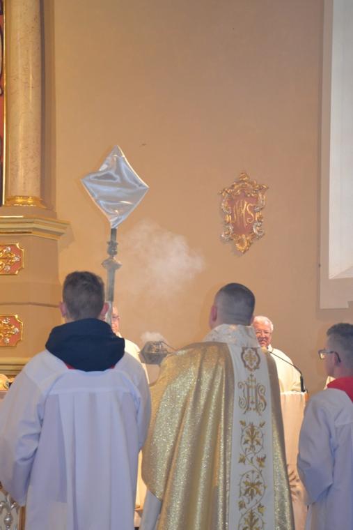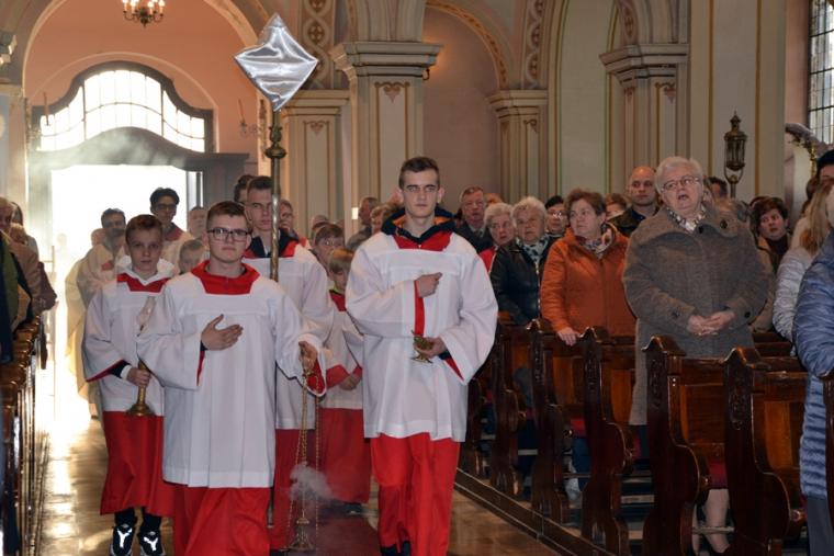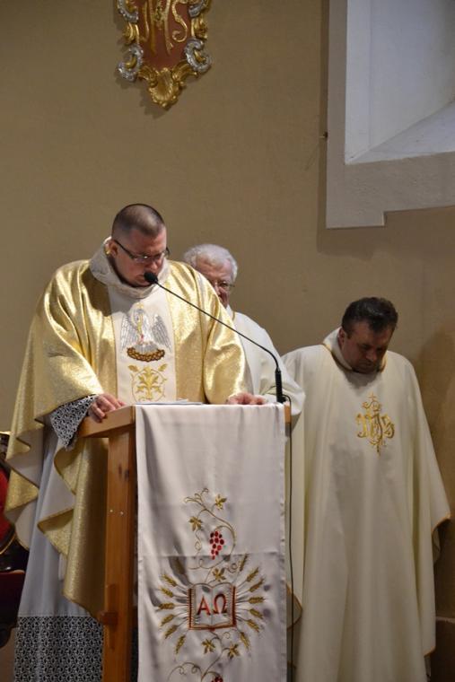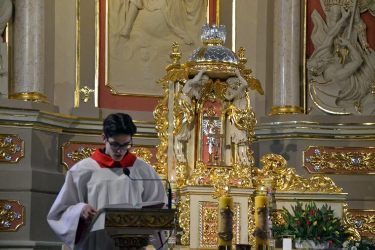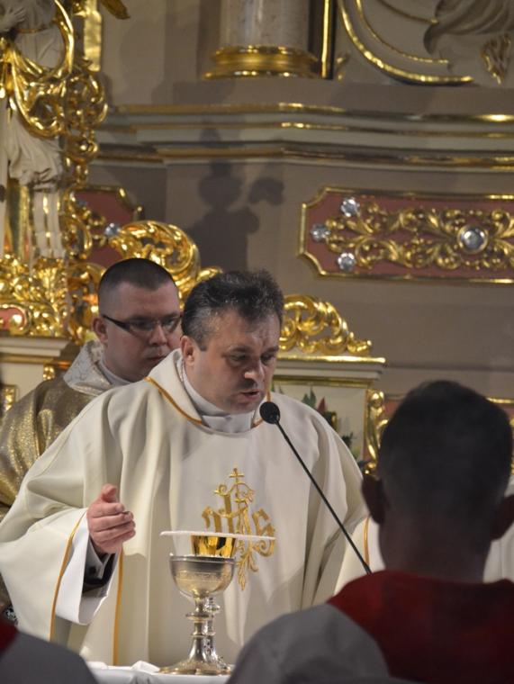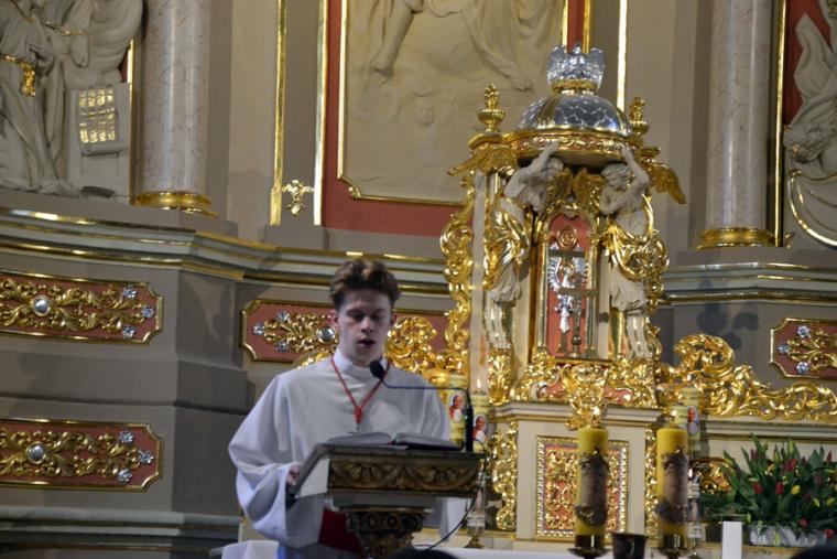 Homilię podczas Mszy Wieczerzy Pańskiej wygłosił  ks. Marcin, który na początku ukazał jak wyglądały przygotowanie do tradycyjnej  paschy  żydowskiej.  Zwrócił uwagę na szczególna troskę o baranka, którego następnie zabijano, bo potrzebna była krew  do dopełnienia obrzędu paschy. Nawiązując do Ewangelii zwrócił uwagę, że Jezus spożył wieczerzą z uczniami przed paschą. Podkreślił,  że Jezus swoją paschę odbędzie  w Wielki Piątek.  Kontynuując kaznodzieja zapytał: „ Czym zatem jest to co Jezus uczynił uczniom podczas wieczerzy”? Odpowiadając  nawiązał do pierwszego cudu  w Kanie Galilejskiej, gdzie puste stągwie, które  Jezus  kazał napełnić wodą, które zamienił w wino. Woda, tym razem w miednicy,  pojawiła się i odgrywa ważną rolę podczas wieczerzy. Kapłan powiedział: „Skoro Jezus spożywa wieczerzę, którą  wyprzedza Jego paschę i zamyka w znak, to co  my czynimy po dzisiejszy  dzień w Eucharystię tzn. że jest to tą sama woda, która zalała grzech Egiptu, kiedy Izraelici uciekali przez suche Morze Czerwone i to  ta sama woda, którą Jezus zamienił w wino w Kanie Galilejskiej, to ta sama woda,  i to też ta sama woda, która wypłynie z boku Jezusa, gdy Go zabijemy”. Kontynuując ks. Marcin wyjaśnił znaczenie gestu obmycia nóg. Zwracając  uwagą na opór Szymona zaakcentował, że to ważny moment dla każdego z nas.  Wymaga przyznania się do tego, że potrzebujemy obmycia. Dodał, że jest jeszcze jedna woda, woda  Chrztu świętego, która zmywa nas z grzechu. Jednak nadal grzech jest  w nas.   Dopiero obmycie przez Chrystusa , którym  jest Jego śmierć, uwalnia nas od grzechu.  Kapłan zaapelował do zebranych: „ Pozwólcie dzisiaj obmyć  wasze serca wodą, która stanie się Krwią Chrystusa przelaną za nas na krzyżu. Jezus dzisiaj wino z Kany Galilejskiej przemienił w swoją krew, ale to od naszego serca zależy za kim pójdziemy”.  Kontynuując  ks. Marcin podkreślił, że to od nas zależy za kim pójdziemy. Podkreślił, że jeśli pozwolimy, by nad naszymi sercami zapanował zły duch, to w naszym życiu nie będzie miejsca na gest obmycia nóg, oczyszczenia i przemianę naszych serc. Kapłan zachęcał zebranych, by zastanowili się co w naszym życiu wymaga przemiany, obmycia w krwi Chrystusa. Kończąc kaznodzieja powiedział: „Niech ta woda, która za chwilę popłynie  na nowo oczyści nasze serca, by nie gościł tam strach, przed chęcią zmiany, by nie gościła tam niepewność, czy z Bogiem uda nam się naprawić nasze życie, ale by ta woda, która jest krwią Boga zmyła z nas to co zostawia w nas zły duch, byśmy mogli w końcu wrócić do Boga czystymi stopami naszych serc. Amen”.