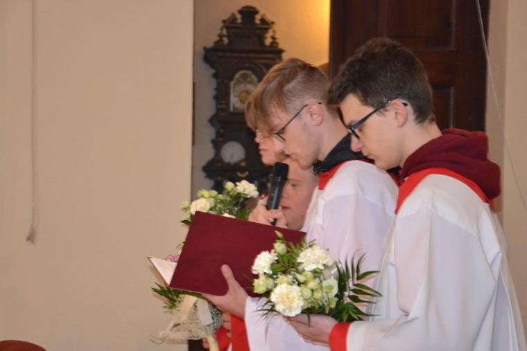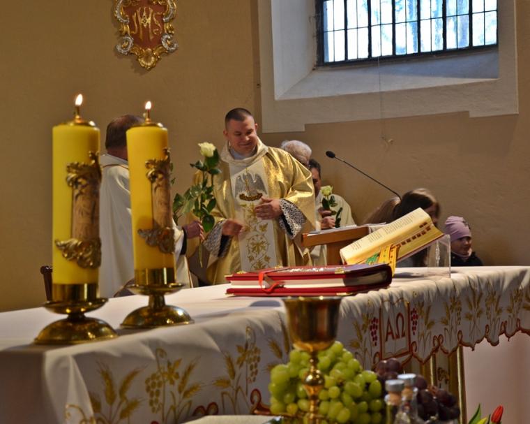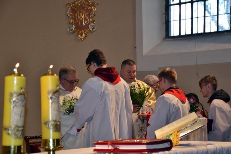 W takim dniu nie mogło zabraknąć słów życzeń i podziękowań dla Kapłanów. W imieniu wspólnoty wypowiedzieli je przedstawiciele Liturgicznej Służby Ołtarza oraz dzieci. Wyrazem wdzięczności były kwiaty, ale przede wszystkim dar naszej modlitwy.