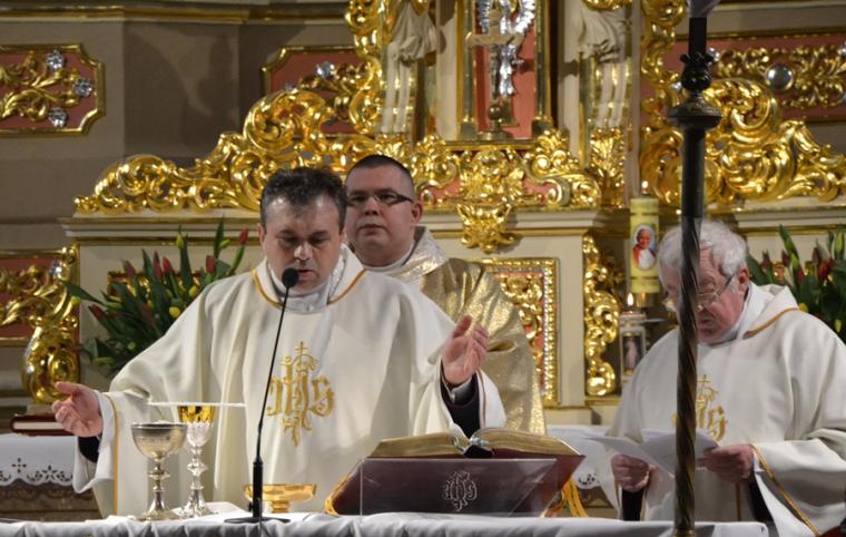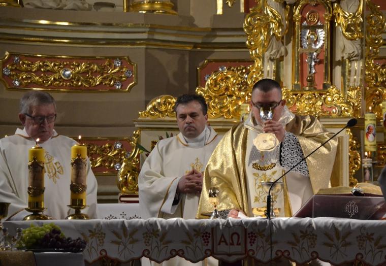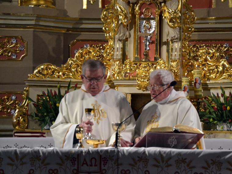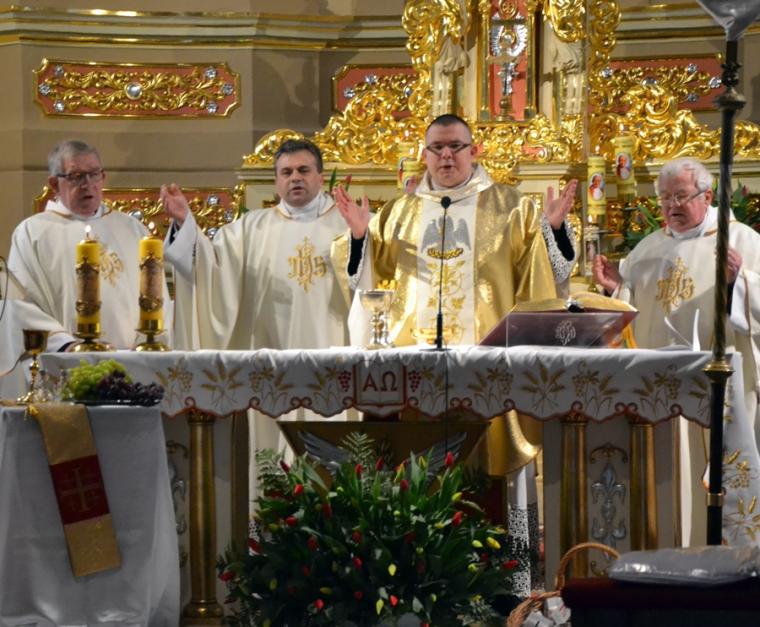 Wielki Czwartek, dzień  ustanowienia Sakramentu  Eucharystii i Kapłaństwa, przepełniony był dziękczynieniem. W tym dniu o godz. 18:30  zebraliśmy się w parafialnym wieczerniku, by dziękować za ustanowienie  Eucharystii i Sakramentu Kapłaństwa, za szafarzy sakramentów, za tych, których Pan powołał i posłał, by prowadzili  nas do Boga. Kapłani sprawujący posługę w mikstackiej parafii dziękowali za łaskę powołania oraz prosili o nowe, święte powołania do służby Bogu i ludziom. Mszy Wieczerzy Pańskiej przewodniczył  ks.  Marcin Walczak. Wraz z nim przy ołtarzu stanęli ks. kan. Krzysztof Ordziniak, ks. kan. Grzegorz Klapa i ks. kan. Zbigniew Mielcarek.