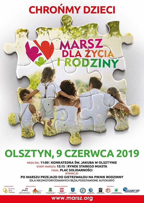 Już jutro (9 czerwca) odbędzie się VIII Marsz dla Życia i Rodziny w Olsztynie.Poprzedzi go Msza Św. w konkatedrze św.Jakuba.Po Marszu odbędzie Piknik Rodzinny w Gietrzwałdzie.