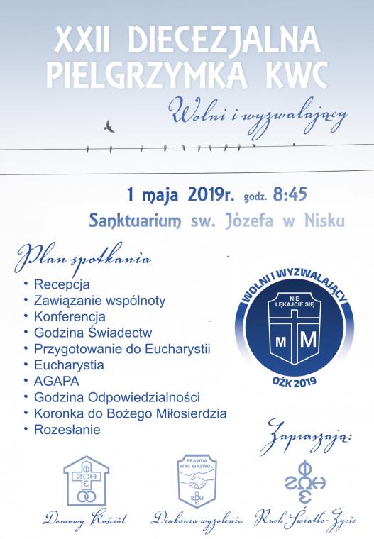 1 maja 2019 roku w Sanktuarium św. Józefa Opiekuna Rodzin w Nisku odbędzie się pielgrzymka Krucjaty Wyzwolenia Człowieka pod hasłem Wolni i Wyzwalający.